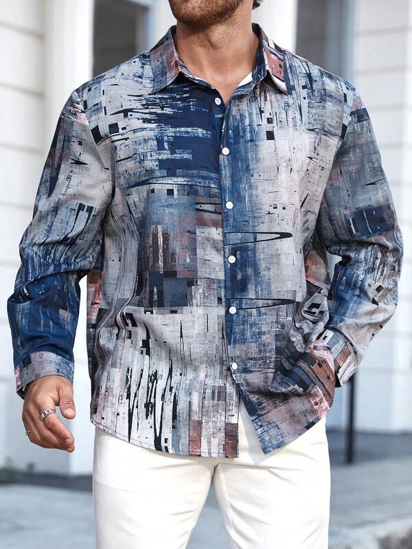 Manfinity Homme Men'S Plus Size Tie Dye Long Sleeve Shirt