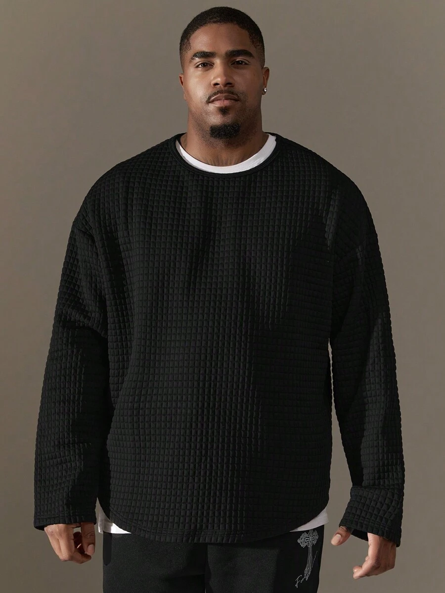 Manfinity Homme Men'S Plus Size Waffle Plaid Long Sleeve T-Shirt