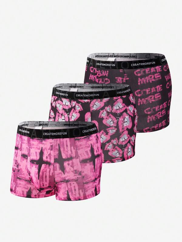 Men'S Printed Boxer Briefs With Woven Tape(3pcs Combination)