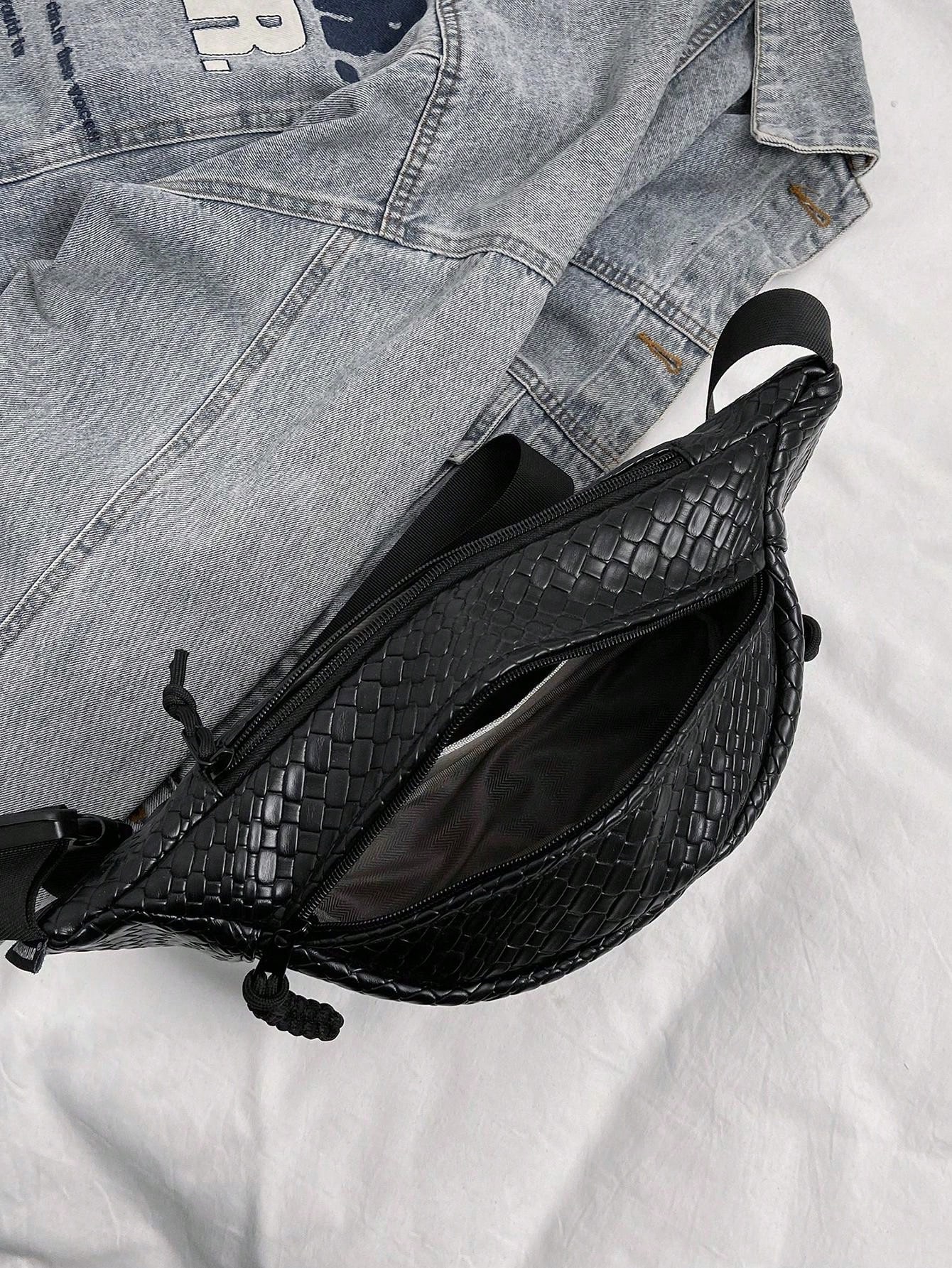 Men'S Pu Leather Waist Bag/Chest Bag/Crossbody Bag/Bicycle Bag/Motorcycle Bag, New Trend Unisex Bag For Gift Fanny Pack Sling Bag Black Bag Bum Bag Waterproof Valentines Gift For Men