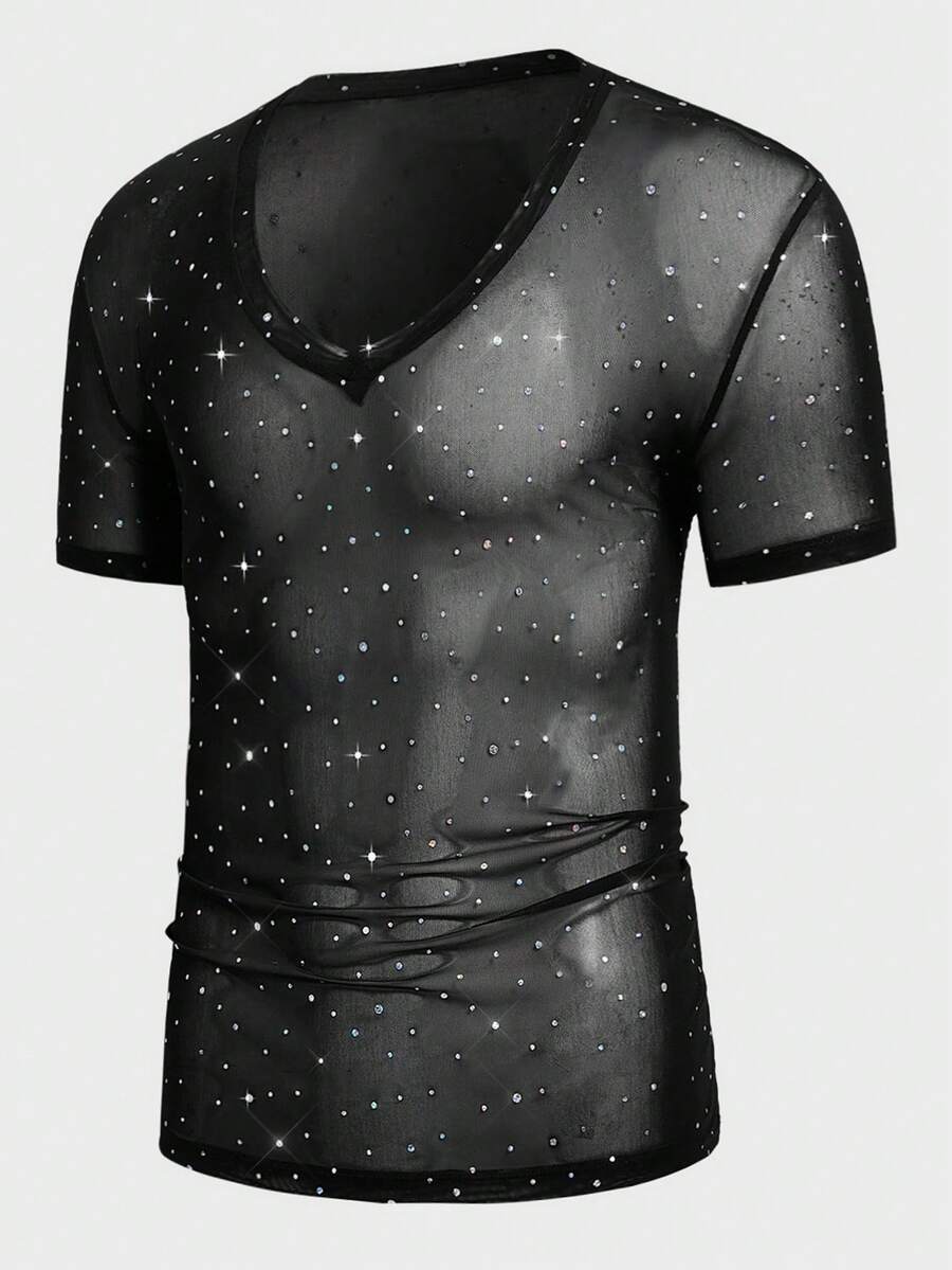 FeverCity Men'S Rhinestone Embellished Mesh T-Shirt