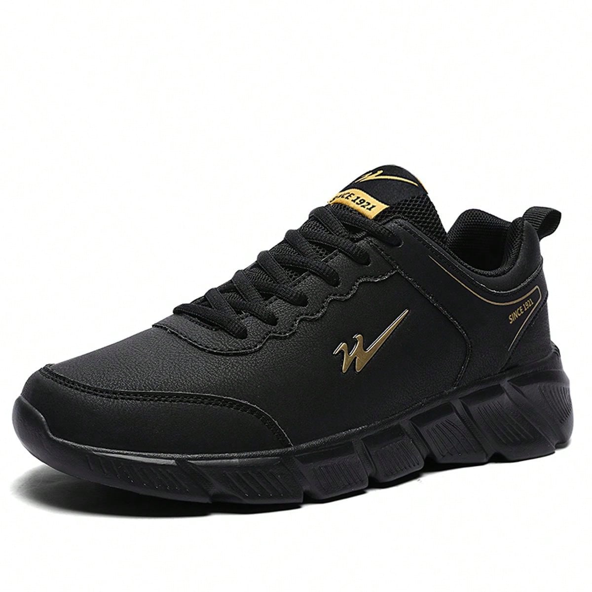 Men'S Shoes 2024 Spring And Autumn New Leather Waterproof Sports Shoes, Soft Anti-Skid Running Shoes, Ultra-Light Casual Flat With Straps Student Black Running Shoes
