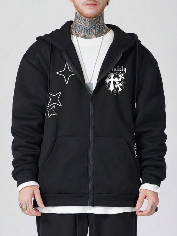 ROMWE Goth Men'S Simple Style Zipper Sweatshirt
