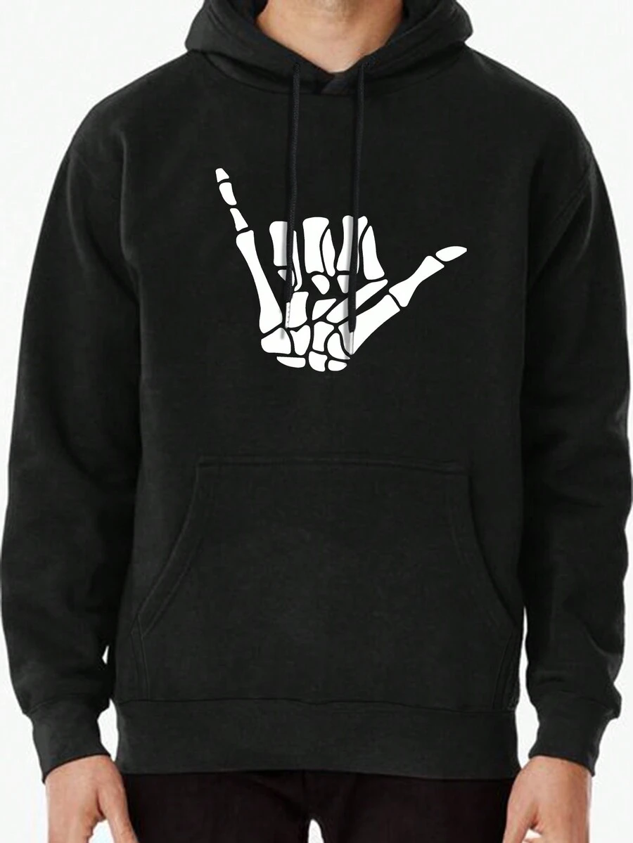 Men'S Skull Hand Print Fleece Hoodie With Drawstring