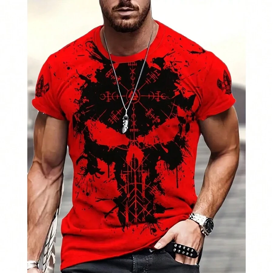Men'S Skull Print Short Sleeve T-Shirt, Casual And Sportswear, Outdoor Cycling Clothing Gym Clothes Men