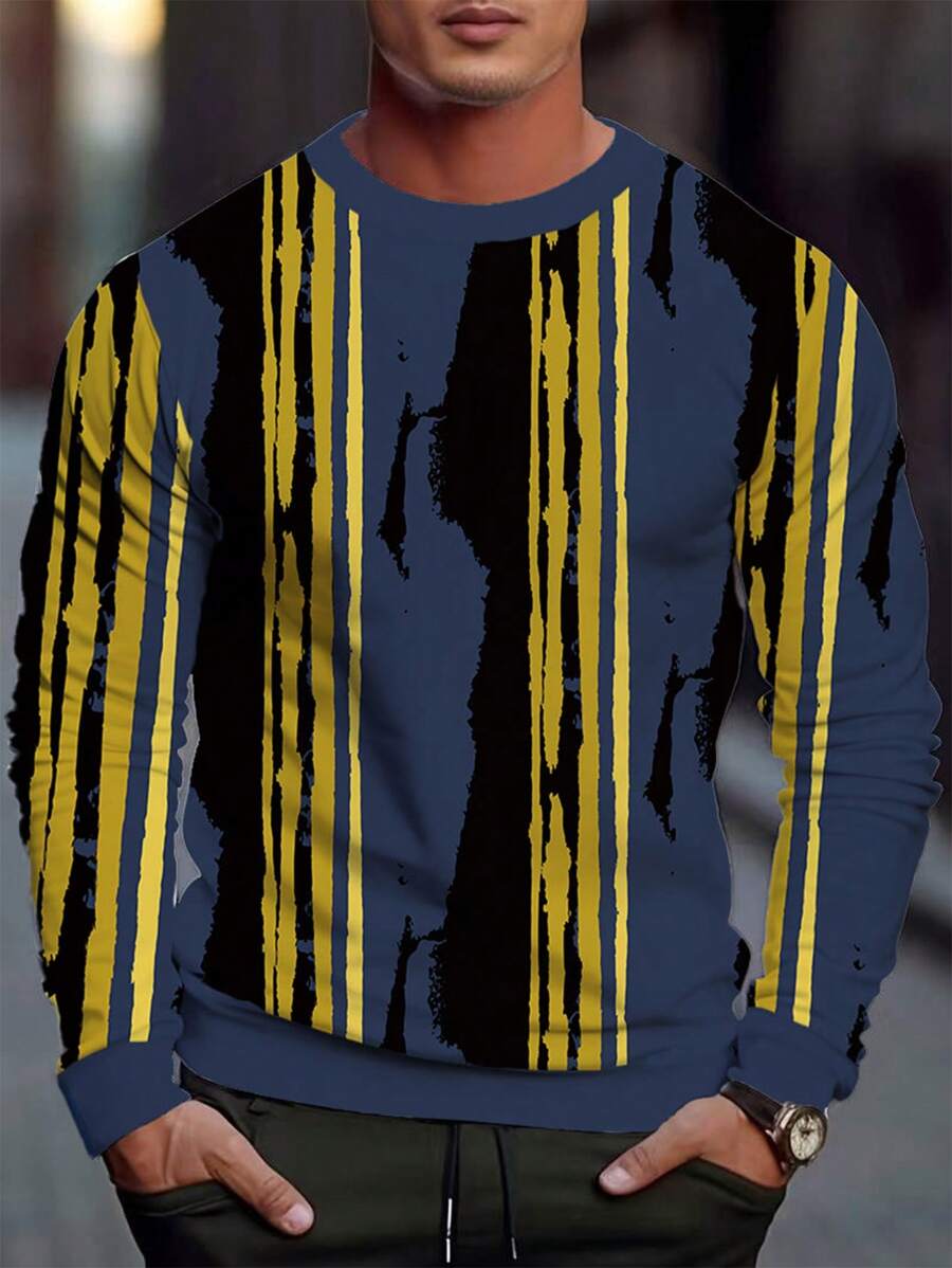 Men's Striped Long Sleeve Pullover Sweatshirt