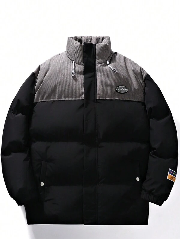 Men'S Warm Hooded Coat With Contrast Plaid Design
