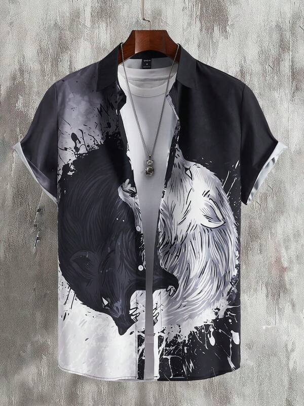 Manfinity Men's Button-front Animal Print Short-sleeved Shirt