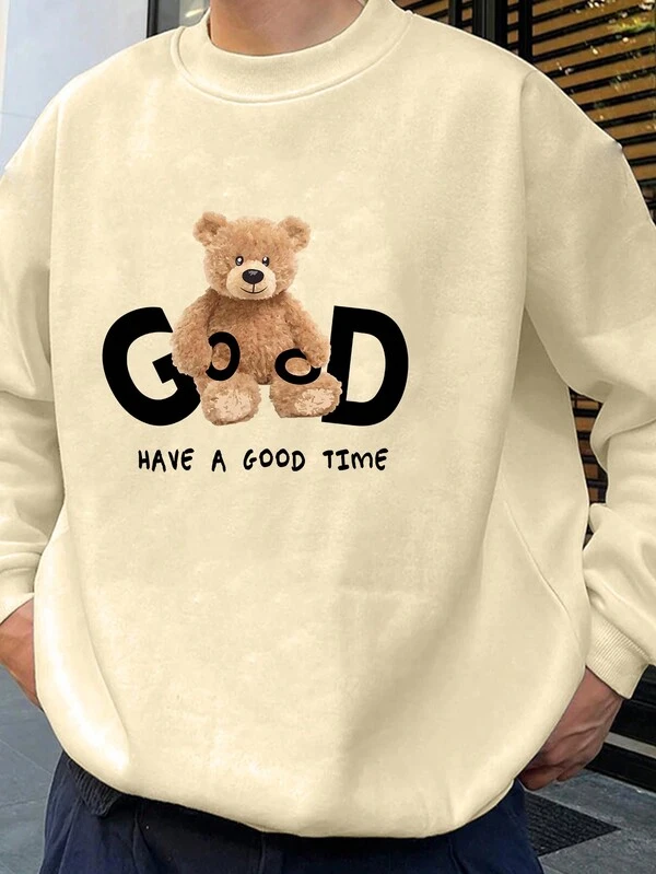 Manfinity Hypemode Men's Cartoon Teddy Bear Fleece Sweatshirt
