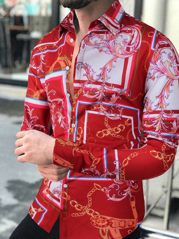Manfinity Men's Chain Printed Long Sleeve Shirt