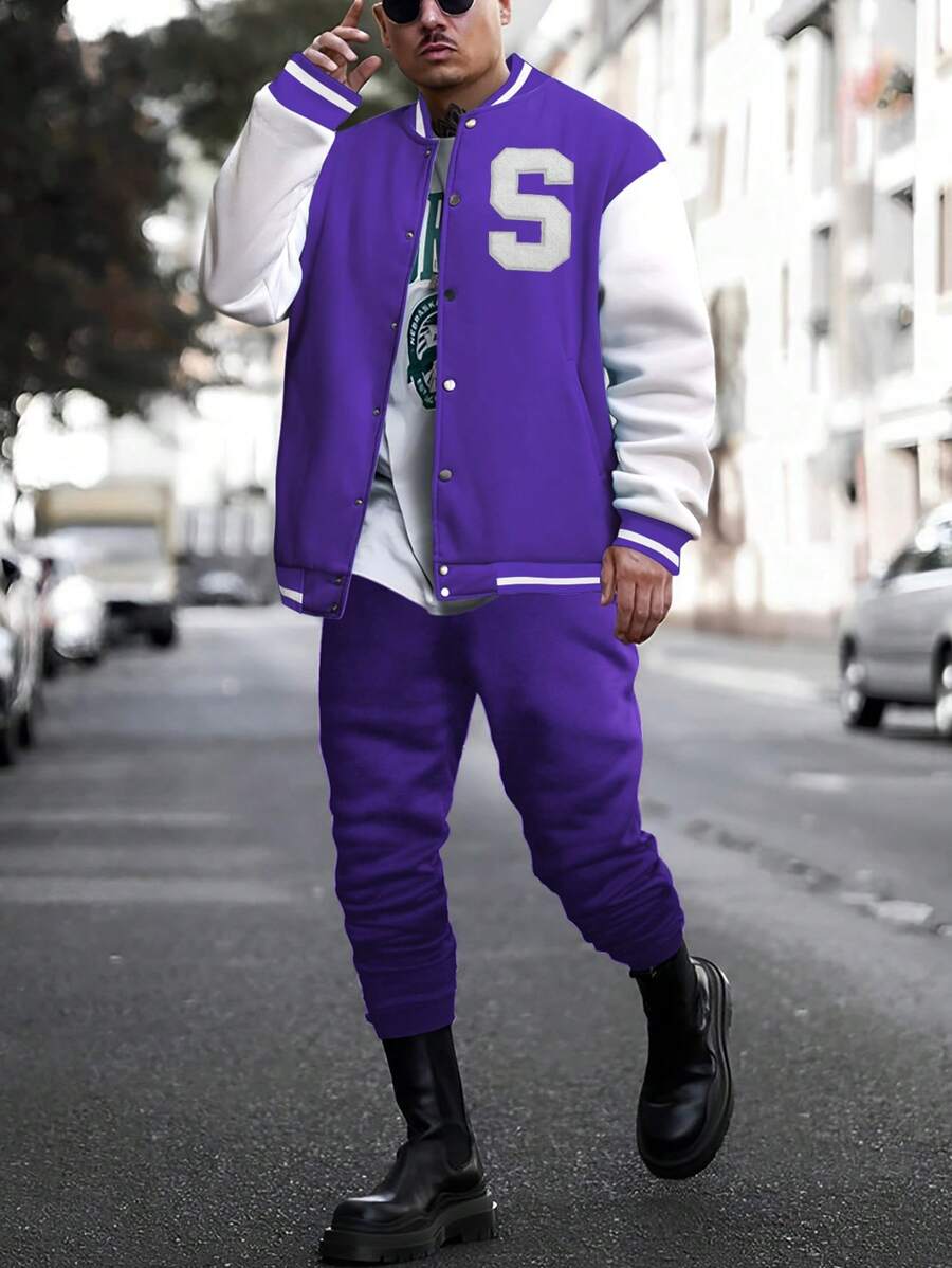 Manfinity Sporsity Men's Color Block Letter Print Jacket And Pants Two Piece Set