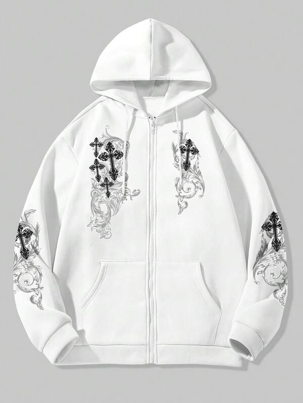 ROMWE Goth Men's Cross Printed Hooded Sweatshirt