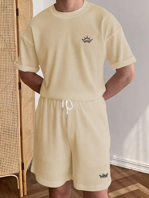 Manfinity Hypemode Men's Crown Pattern Short Sleeve T-shirt And Shorts Set