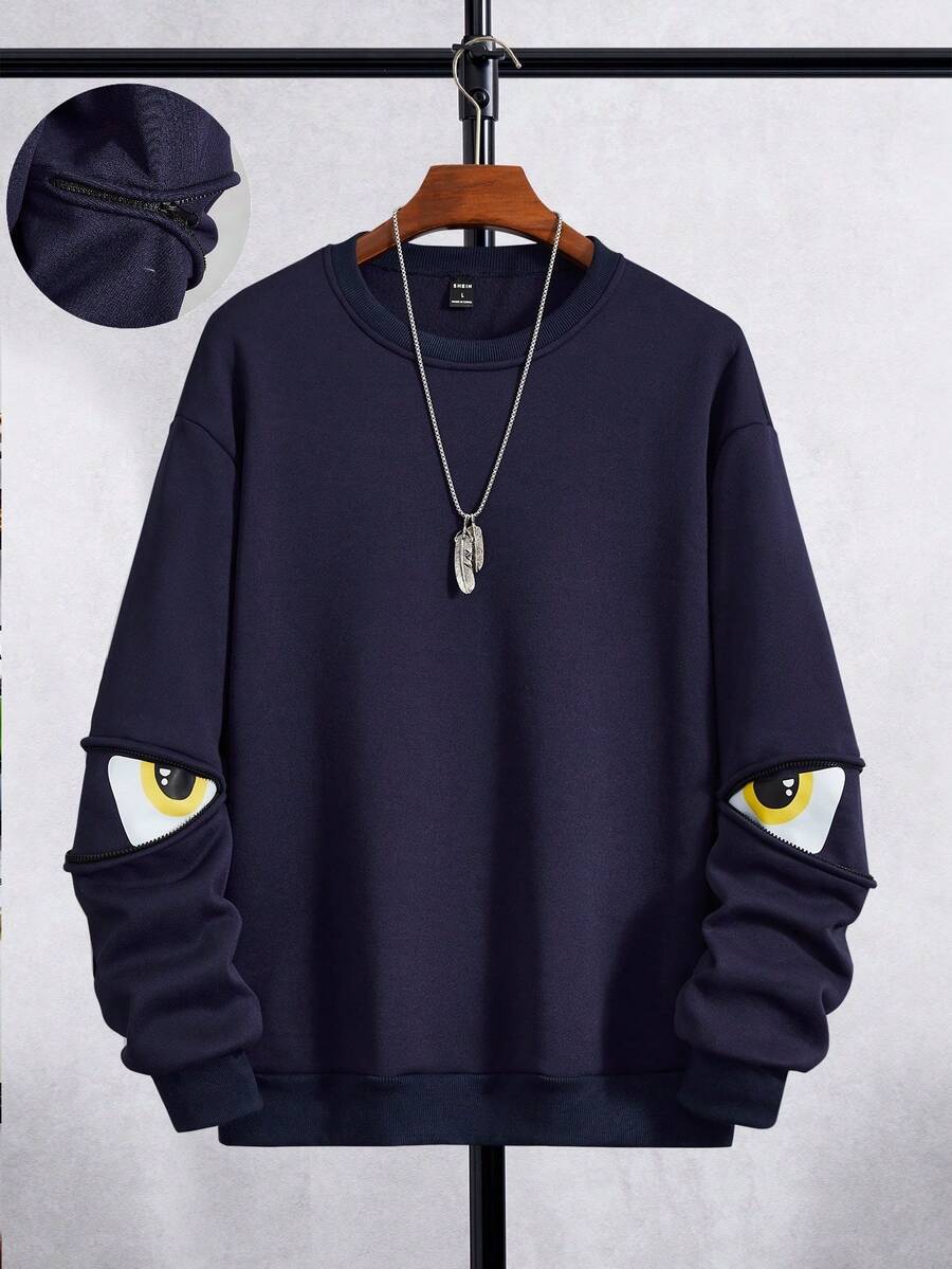 Manfinity Hypemode Men's Drop Shoulder Glasses Printed Round Neck Sweatshirt