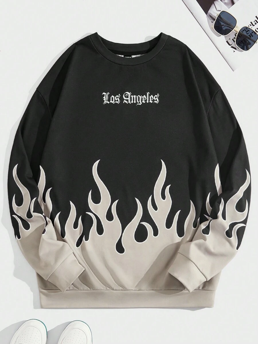 Manfinity EMRG Men's Flame Letter Printed Round Neck Sweatshirt