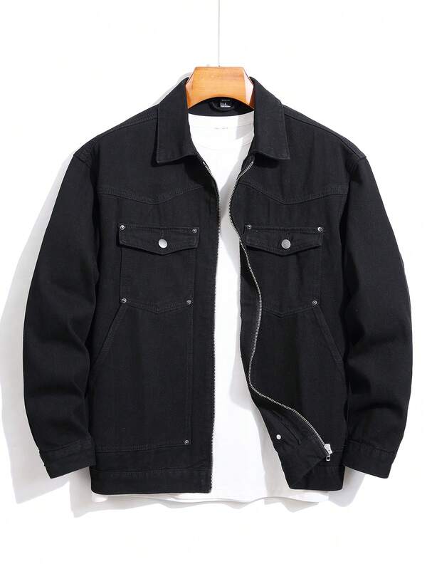 Manfinity Men's Flip-cuffed Zippered Pocket Denim Jacket