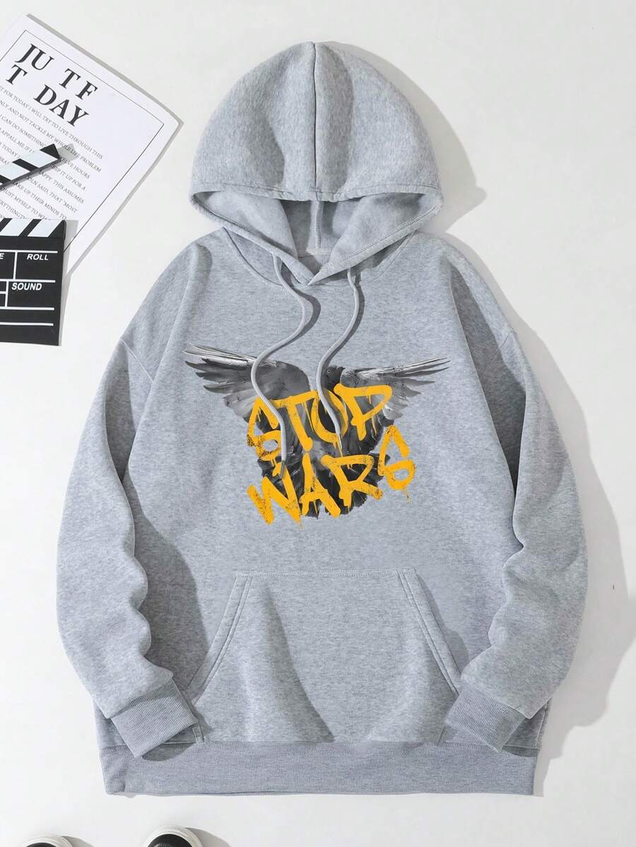 Men's Leisure Drawstring Hoodies With Printed Texts