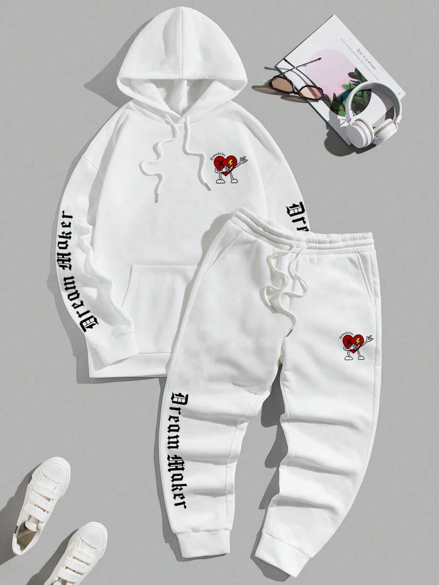 Manfinity EMRG Men's Letter & Cartoon Printed Hoodie & Jogger Set