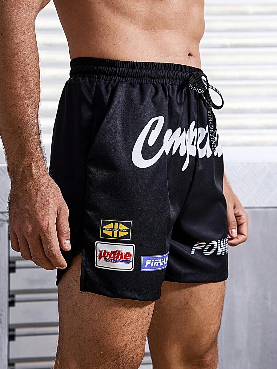 Men's Letter Print Drawstring Waist Sports Shorts