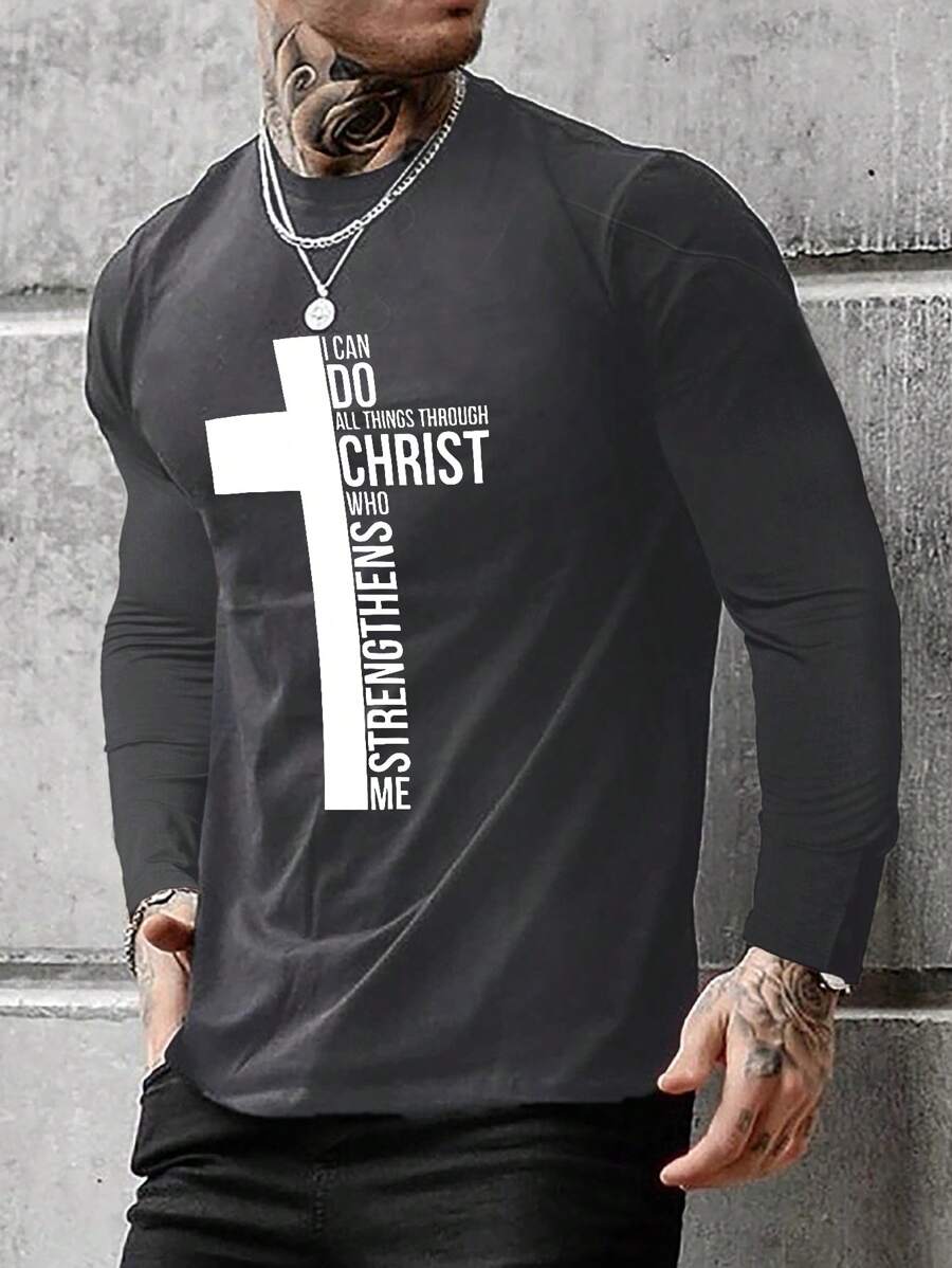 Men's Long Sleeve T-shirt With Text Print