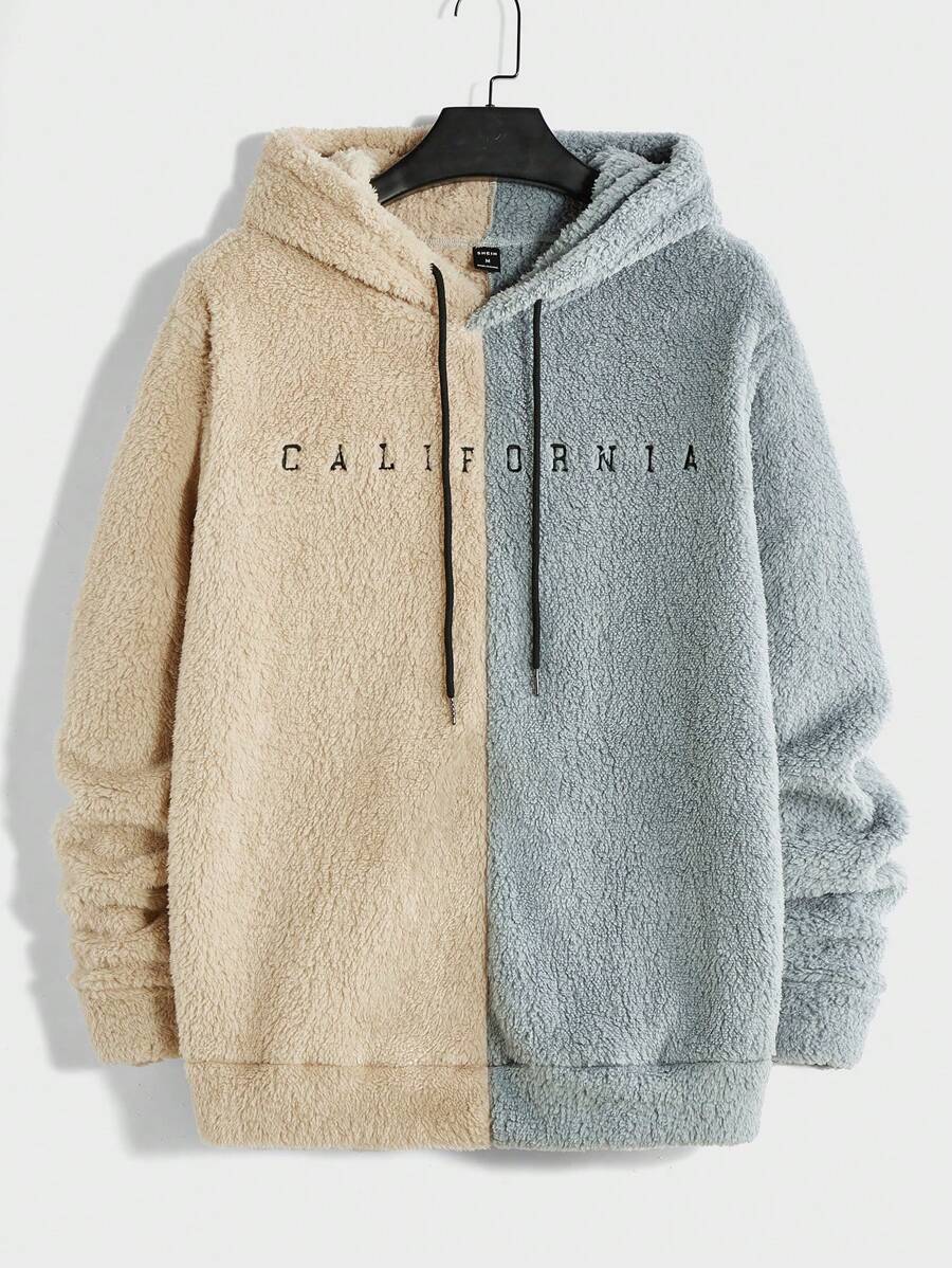 Manfinity Hypemode Men's Plus Size Color Block Plush Hoodie With Embroidery Letter And Drawstring