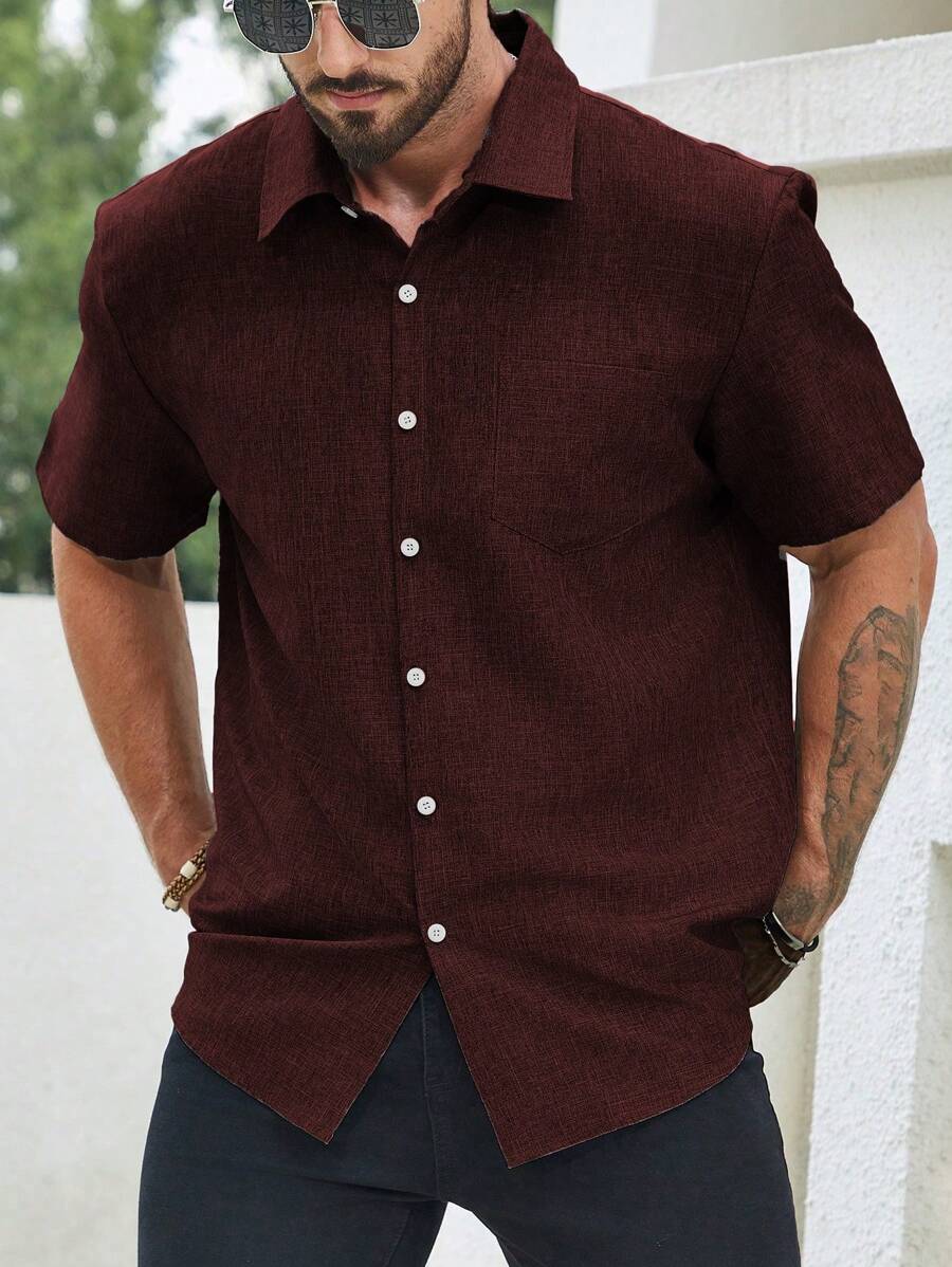Manfinity Homme Men's Plus Size Solid Color Patch Pockets Stand Collar Shirt