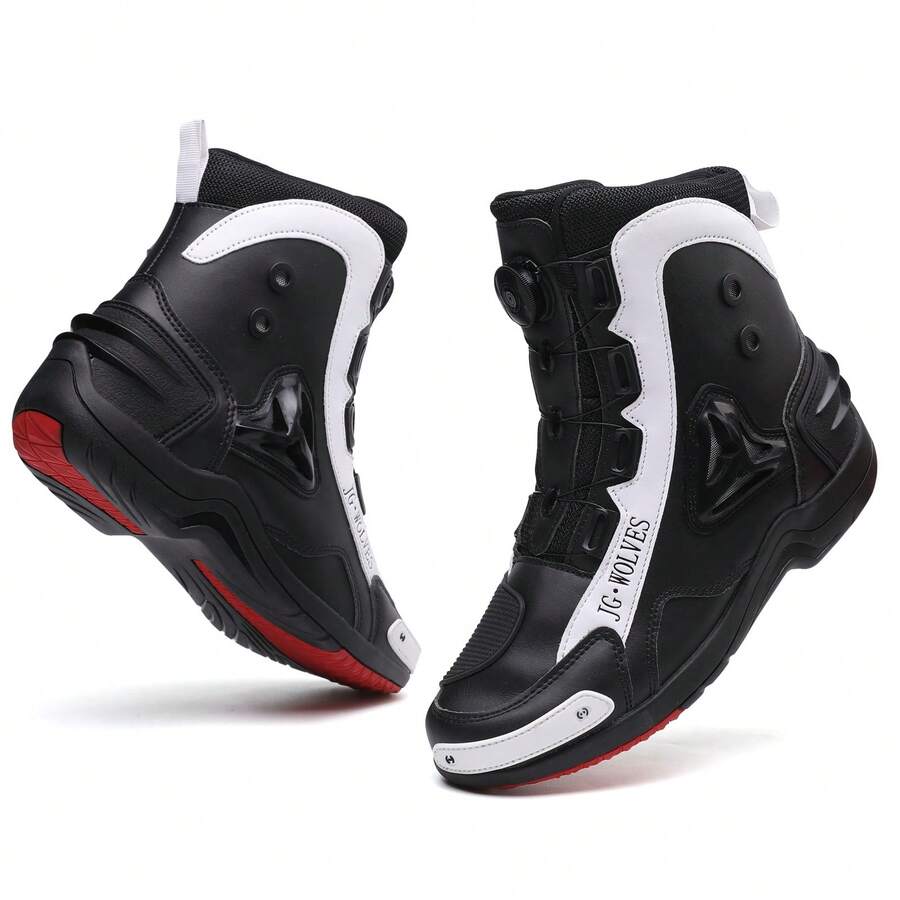 Men's Professional Motorbike Boots, Autumn And Winter, Durable, Anti-slip, Suitable For Motorcycle Racing, Red Stitching & Round Toe, High-cut, Casual & Color Blocking Sport Shoes, Lace-up