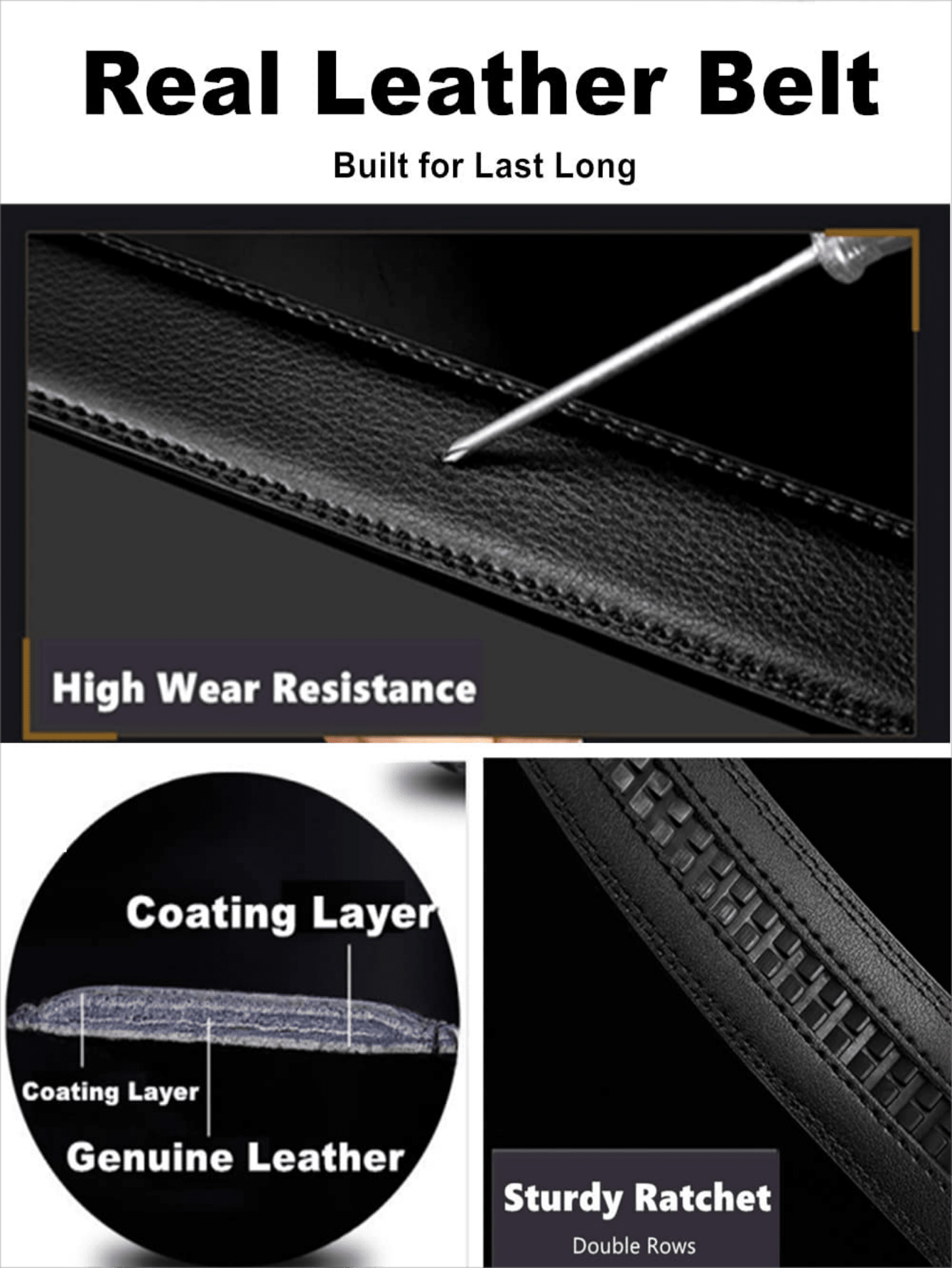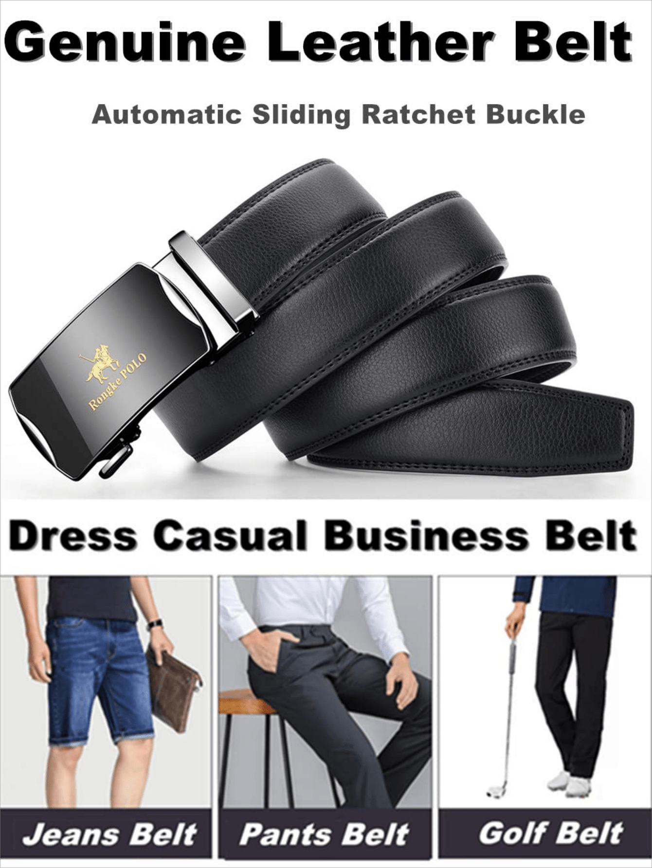 Men's Ratchet Genuine Leather Dress Belt, Black Belt For Suit & Jeans, American Design, With Gift Box, Fits All Daily Occasions, Formal Wear, Pants.