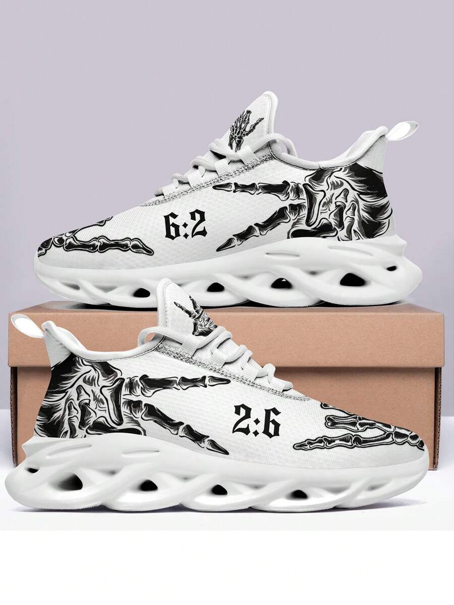 Men's Skull & Hand Bone Print Running Shoes With Blade Sole, Comfortable, Breathable, Lightweight, Wear-resistant, Shock-absorbing And Cushioned, Suitable For Outdoor Activities
