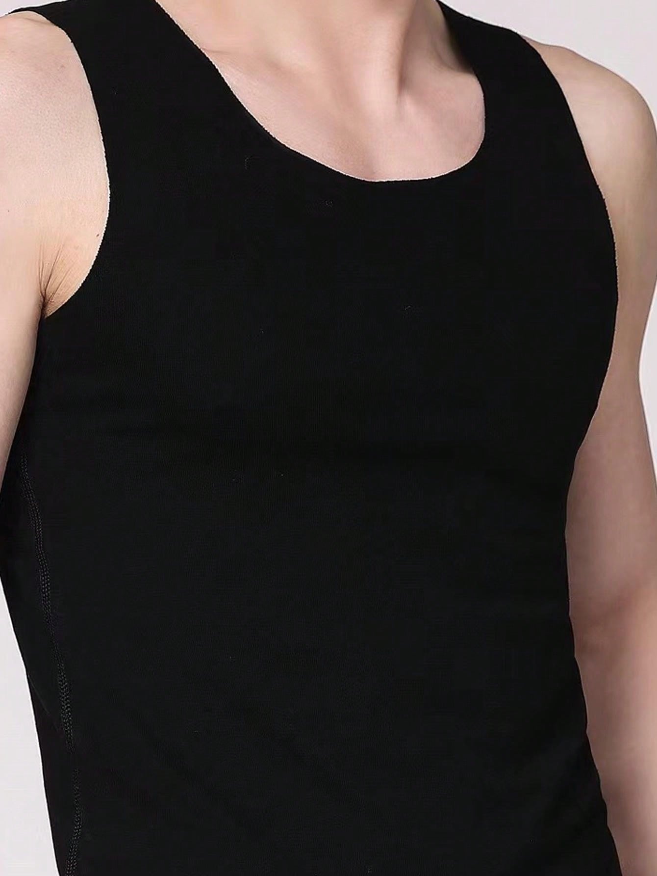 Men's Slim Fit Breathable & Sweat-absorbing Sports Undershirt, Tank Top With Work Out Back