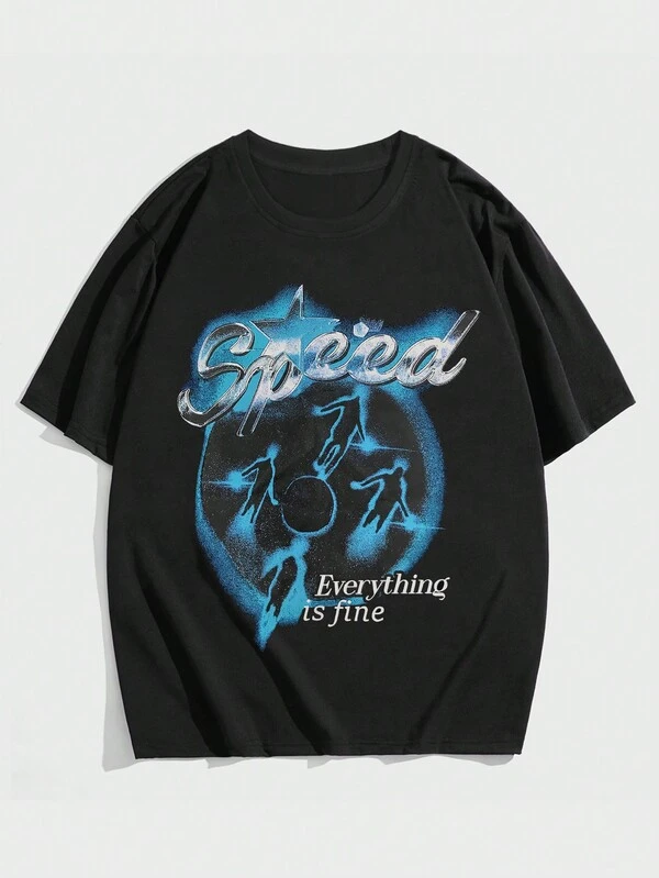 ROMWE Goth Men's Slogan And Character Pattern Oversized T-shirt