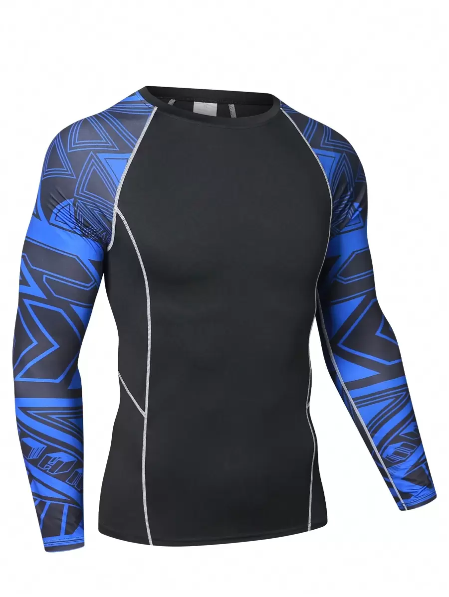 Men's Sportswear Long Sleeve Geometric Printed T-Shirt For Running, Basketball And Cycling; Men's Tight-Fit Quick Dry Elastic Sport Compression Long Sleeve Fitness Shirt, Men's Quick Dry Arm Flower Printed T-Shirt For Running & Workout; Men's Pro Quick Dry T-Shirt For Running & Workout Gym Clothes Men