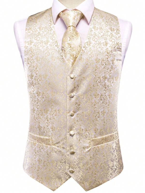 Valentine's Day Men Suit Vest Set With Tie, Handkerchief And Adjustable Back Buckle