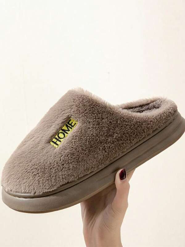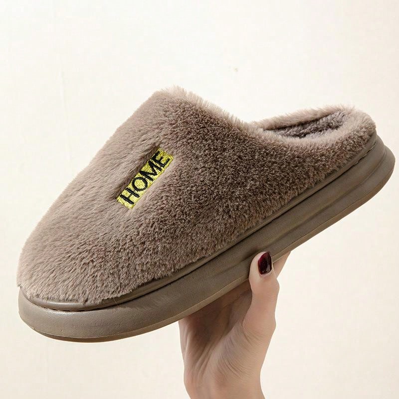 Men's Thick Plush Winter Indoor Slippers For Home With Antislip Outsole, Outdoor Couple Slides