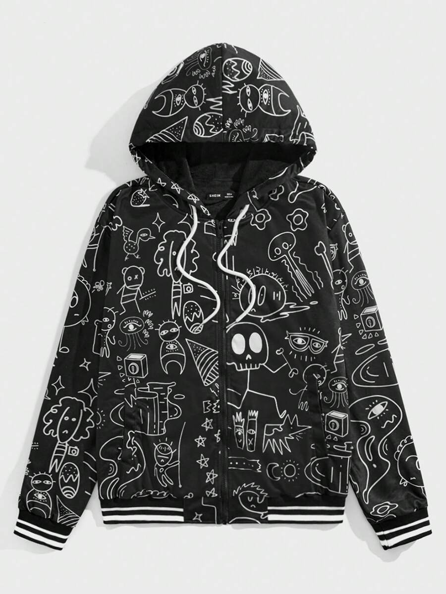 Manfinity Unisex Men 1pc Cartoon Graphic Striped Trim Drawstring Hooded Jacket