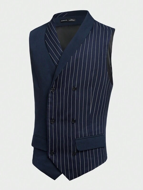 Manfinity Mode Men 1pc Vertical Striped Double Breasted Waistcoat