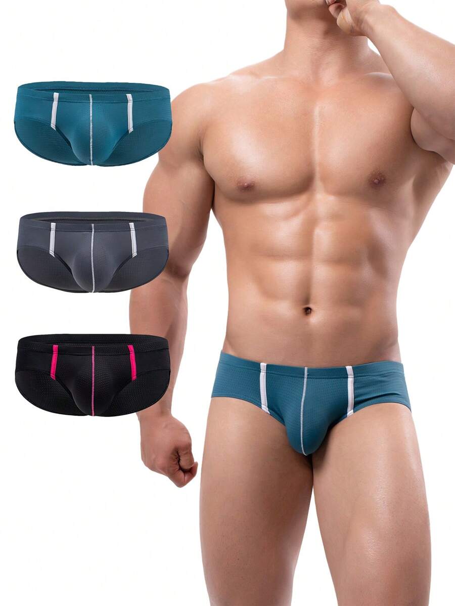 Men 3pcs Contrast Tape Brief