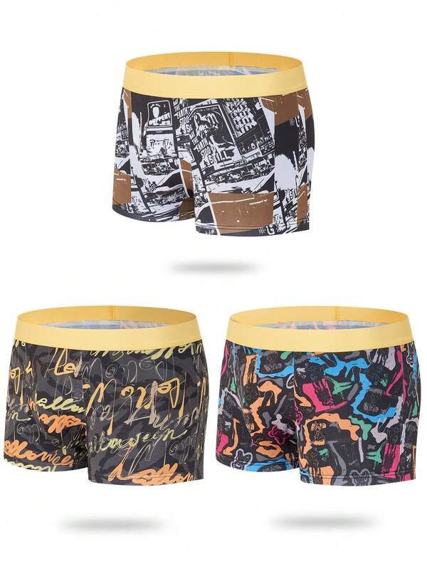 Men 3pcs Graphic Print Boxer Brief