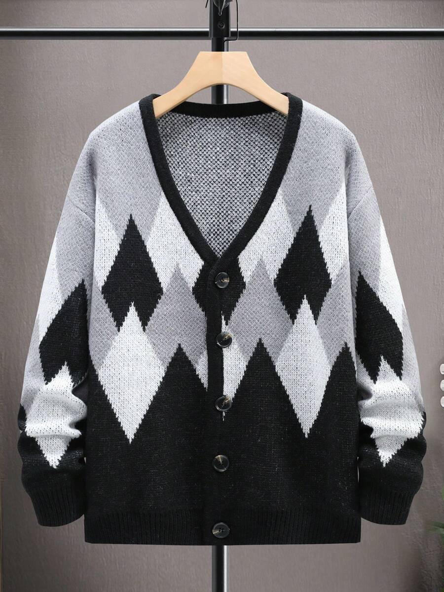 Manfinity Men Argyle Pattern Drop Shoulder Cardigan