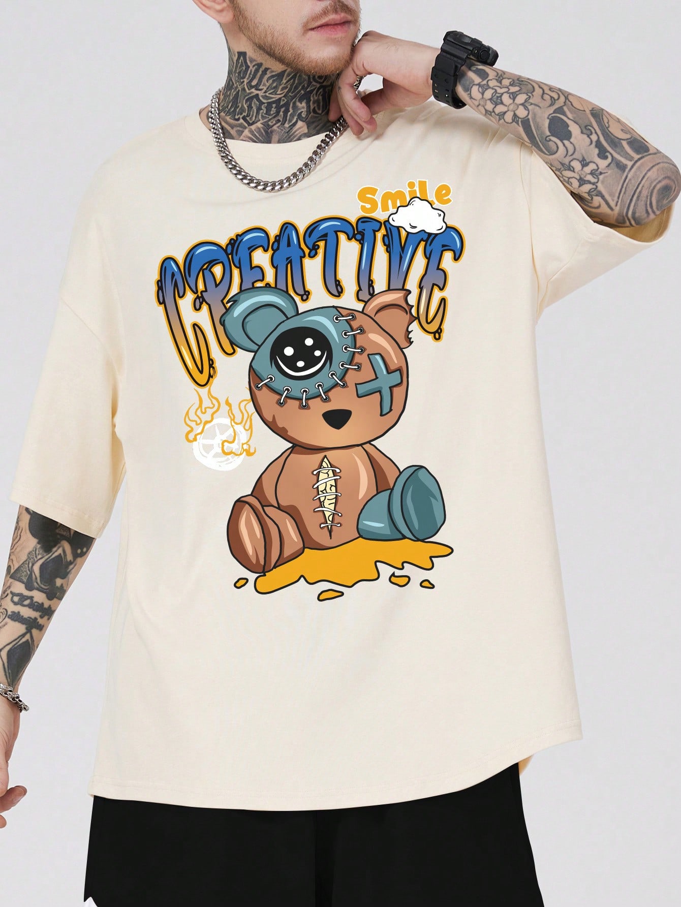 ROMWE Street Life Men Bear & Letter Graphic Drop Shoulder Tee