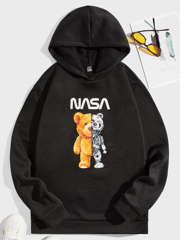 Manfinity Hypemode Men Bear And Letter Graphic Hoodie