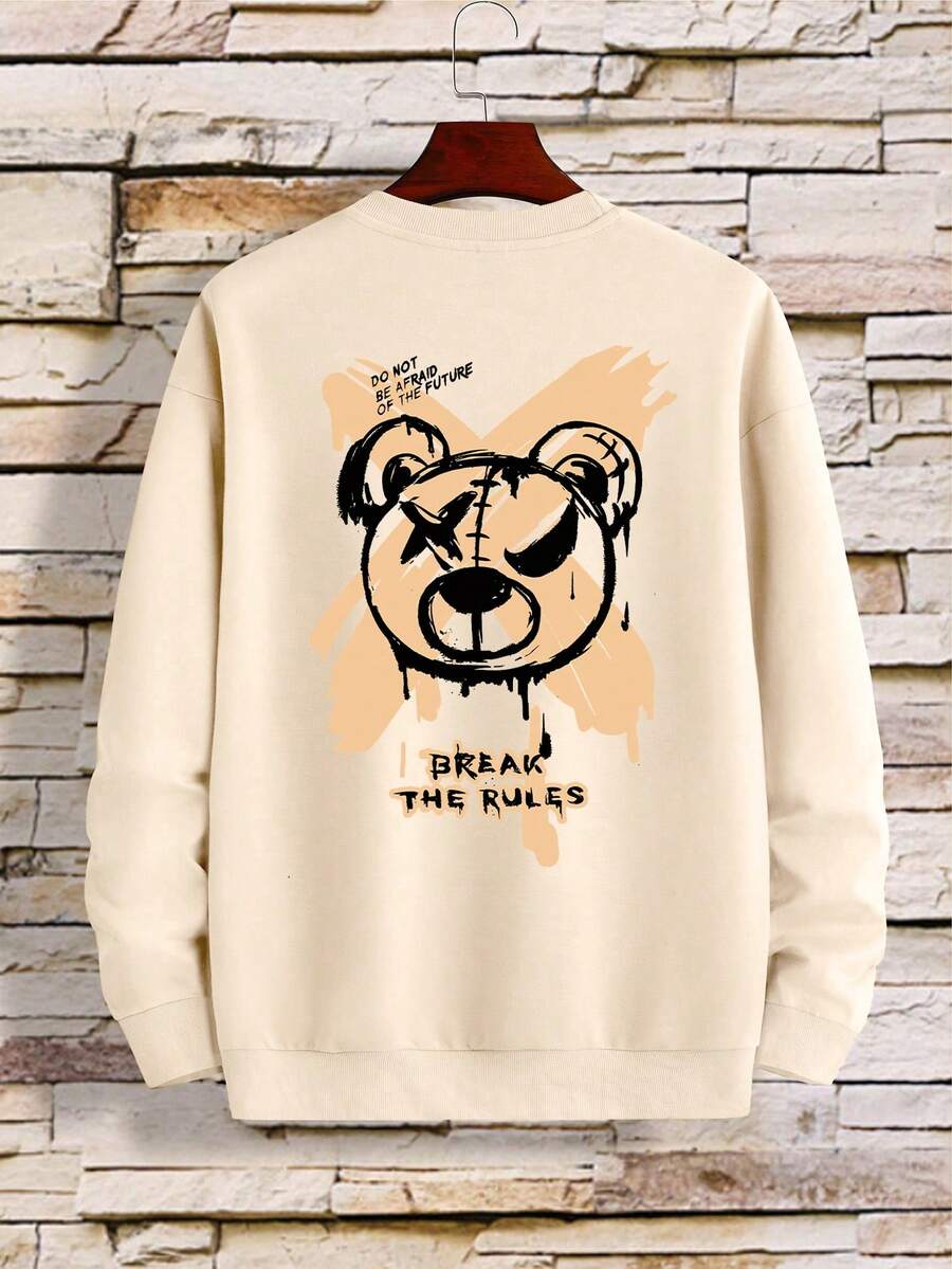 Men Bear And Slogan Graphic Sweatshirt