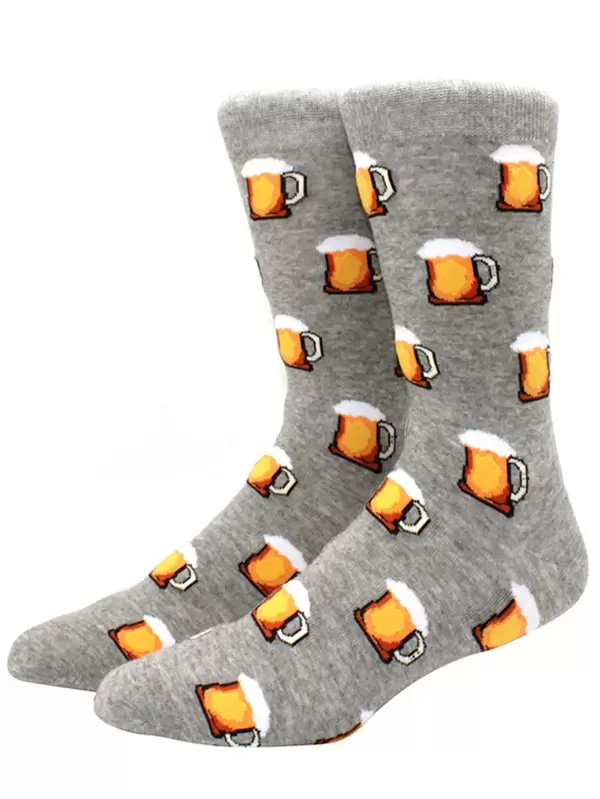 Men Beer Pattern Fashion Crew Socks For Daily Life