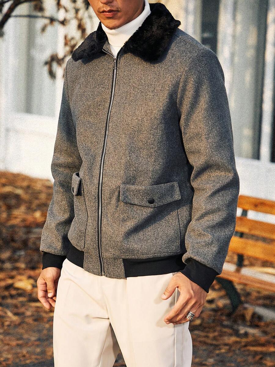 Manfinity Homme Men Borg Collar Flap Pocket Zip Up Overcoat Without Sweater