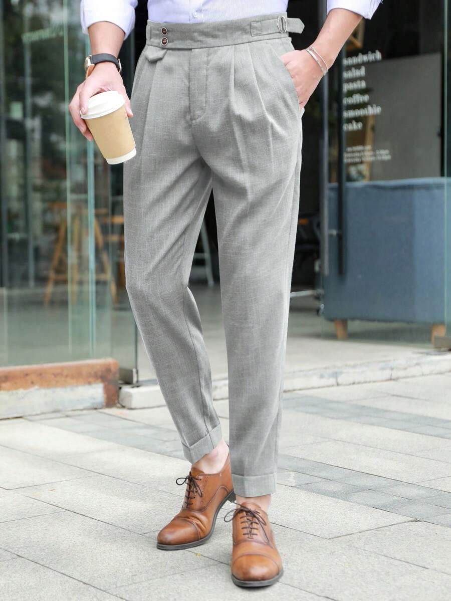 Manfinity Mode Men Buckled Detail Slant Pocket Suit Pants