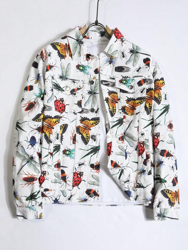 Manfinity LEGND Men Butterfly Print Denim Jacket Without Tee