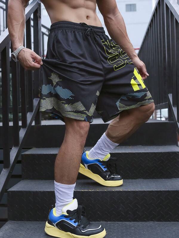 SHEIN Street Sport Men Camo Print Drawstring Waist Sports Shorts