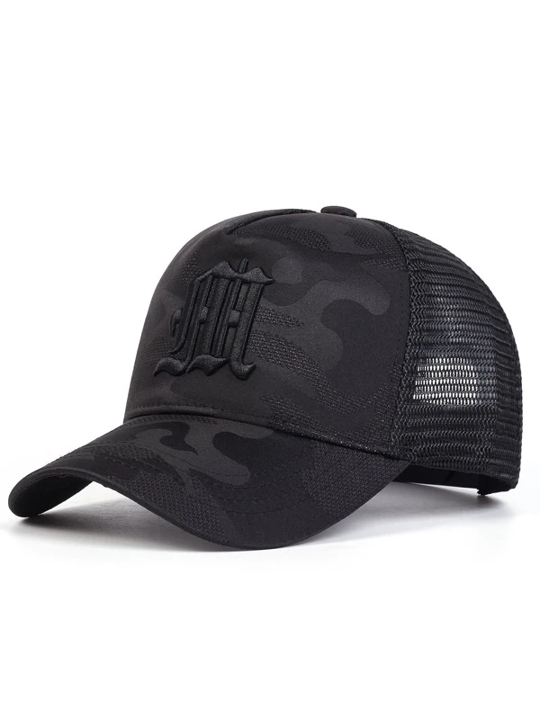 Men Camo Print Letter Embroidered Trucker Hat For Daily Life