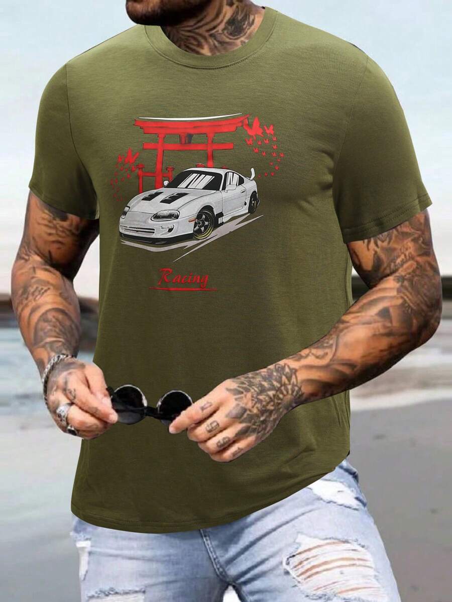 Manfinity LEGND Men Car & Letter Graphic Tee