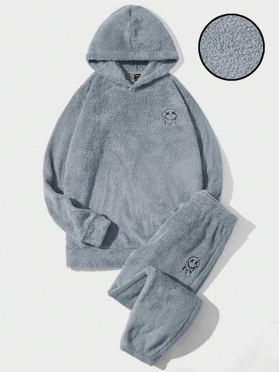 Manfinity Men Cartoon Embroidery Raglan Sleeve Teddy Hoodie & Pants